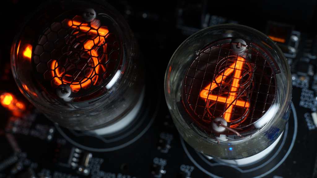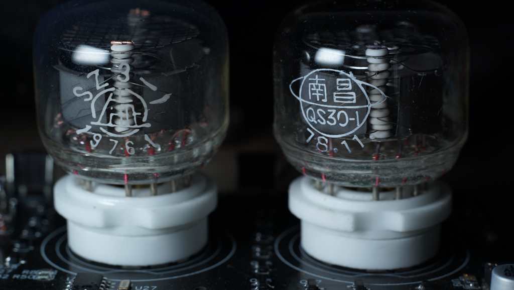 辉光管是上个世纪的产品,已经停产了几十年了。我选用的是国产的QS30系列辉光管,选用它的理由只有一个:便宜。上图中就是两支辉光管,虽然型号不一样,但是用起来是一样的。左边的是上海牌SZ3-1,生产日期为1976年1月,右边的为南昌牌,生产日期为1978年11月。点亮辉光管需要170V的电压,板子上使用了反激拓扑的升压电路,将5V升压到170V,调试时误触过一次,有疼痛感。