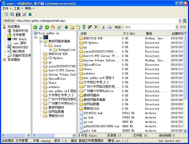 上传后发现权限也没有做限制,可以跨到C盘。